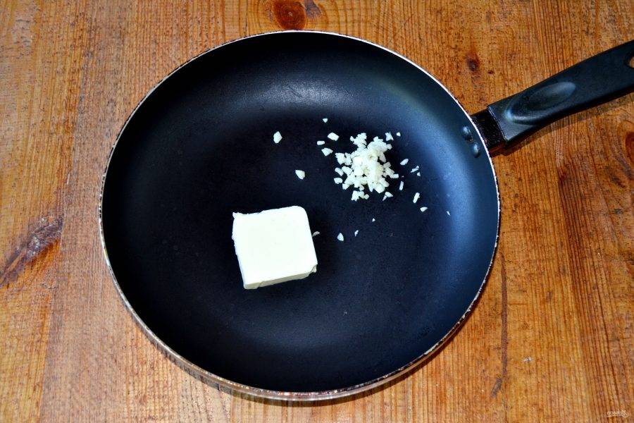 На сковороде растопите сливочное масло, добавьте измельченный чеснок и обжарьте буквально минутку.