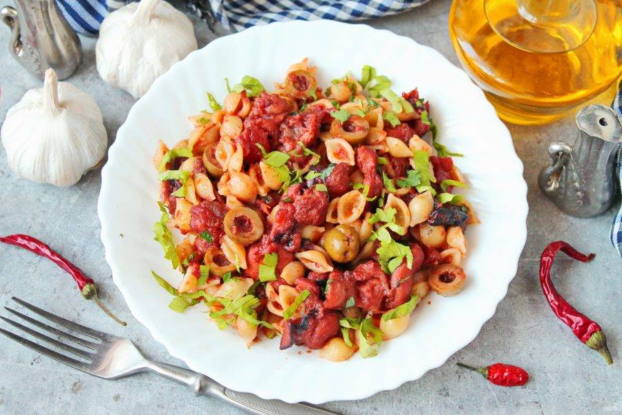 Паста приготовленная с соусом из осьминога — отличный вариант для семейного ужина, когда хочется устроить небольшой праздник. Получится не хуже чем в ресторане и совсем несложно. Берите на заметку!