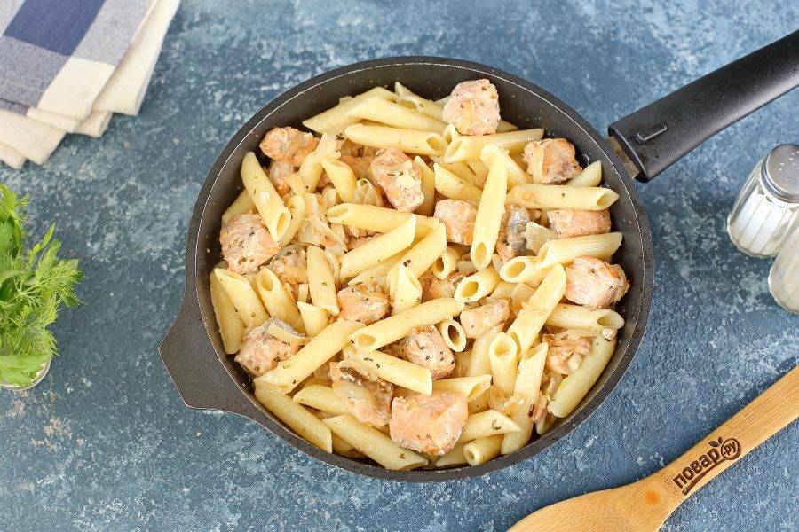 Перемешайте и прогрейте все вместе еще пару минут. Паста "Сальмоне" готова.