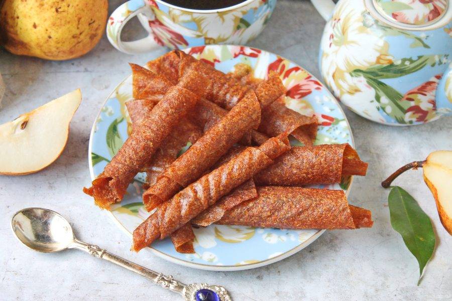 Предлагаю приготовить вкусные и полезные трубочки пастилы из груши. Отличный вариант, ведь в такой пастиле нет ни грамма сахара, все натурально. Берите рецепт на вооружение!