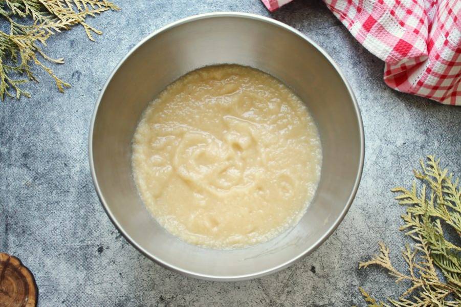 Смажьте растительным маслом поддон сушилки или вырежьте пергамент по размеру поддона и смажьте растительным маслом. Выложите пюре из груши и разровняйте тонким слоем.