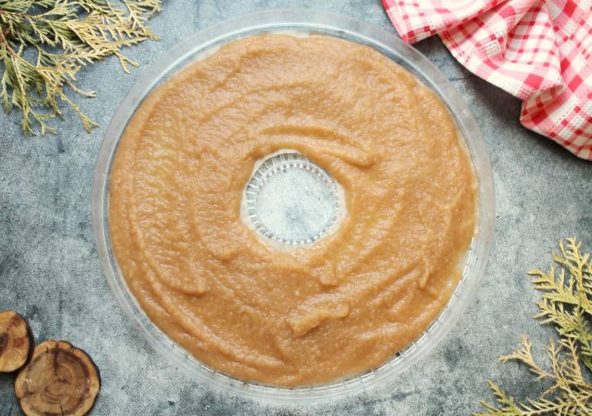 Установите поддоны с пюре в сушилку и установите температуру 60 градусов. Для приготовления понадобится от 8 до 10 часов. Время зависит от толщины слоя пюре.