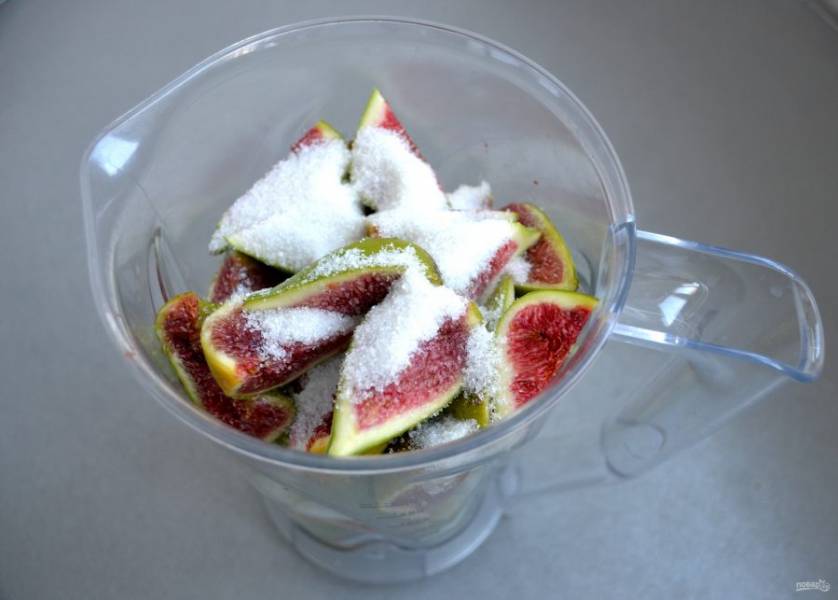 Перед измельчением добавьте предварительно сахар, если инжир не очень сладкий. Количество сахара добавляйте по своему вкусу.