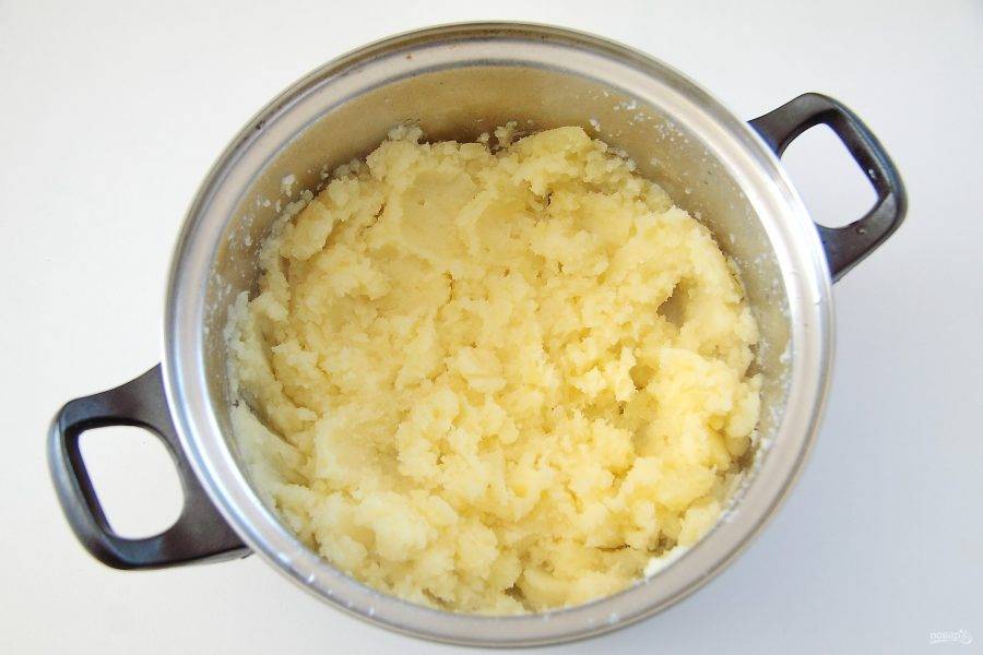 3. Отварите до готовности, слейте воду и хорошо разомните в пюре с 20 гр сливочного масла.