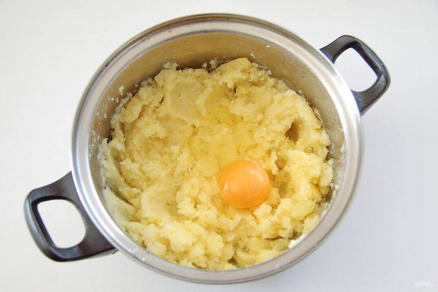 4. Дайте пюре немного остыть, после чего добавьте яйцо и соль по вкусу.