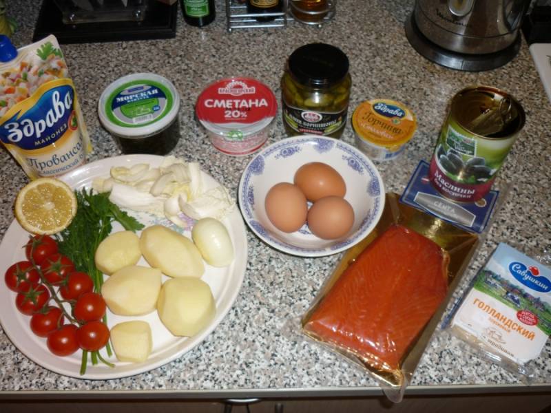 Подготавливаем продукты, картофель чистим, варим, яица варим.