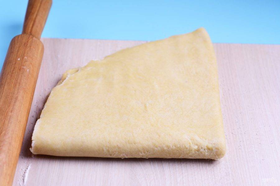 Сложите тесто еще раз пополам и немного прокатайте скалкой.