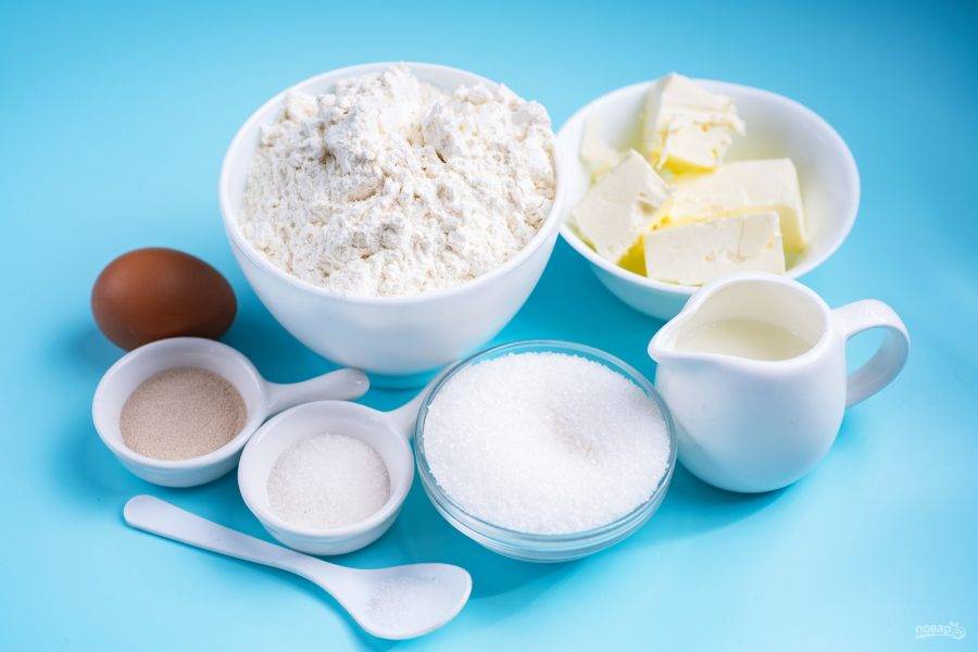 Все ингредиенты выложите на стол. Молоко заранее подогрейте в сотейнике немного, это примерно до 36-38 градусов.