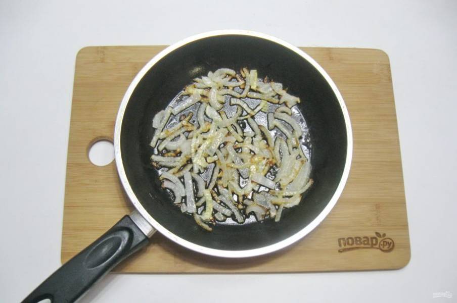 Обжарьте лук в масле до золотистого цвета.