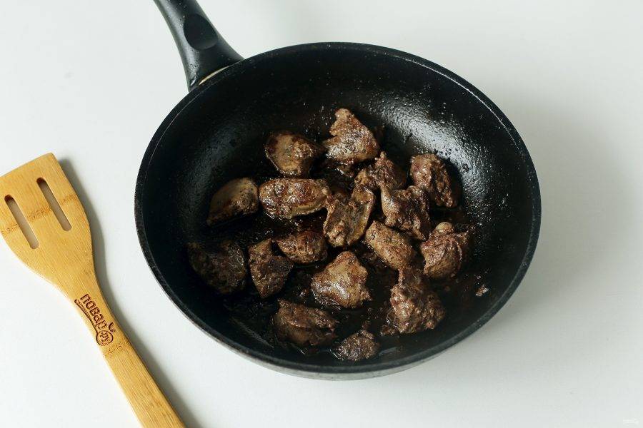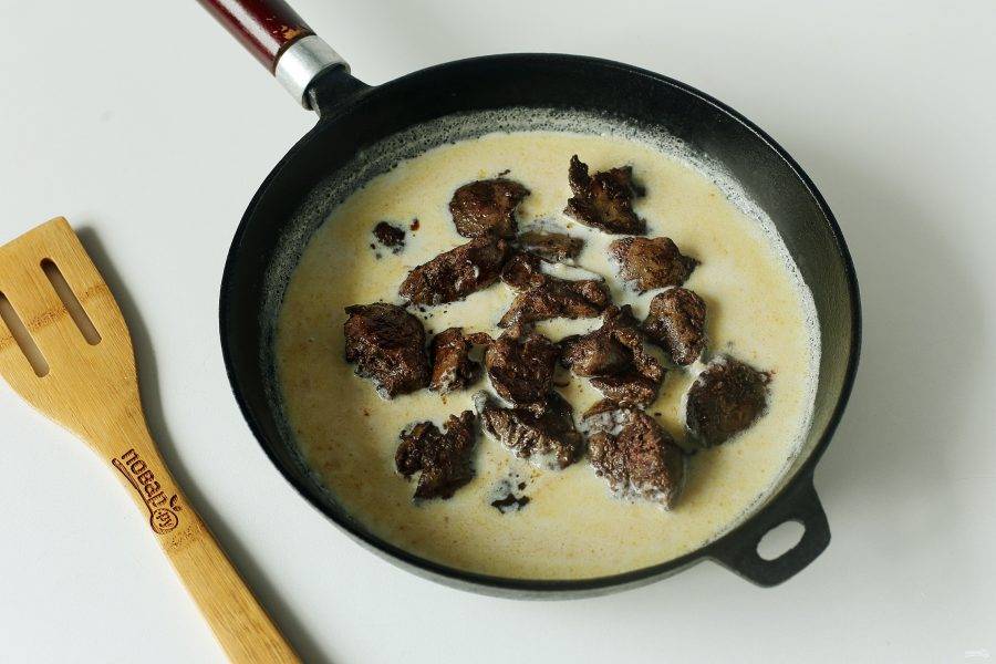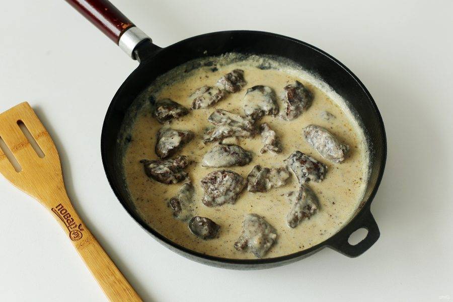 Отрегулируйте соус на соль, и добавьте обжаренную печень.