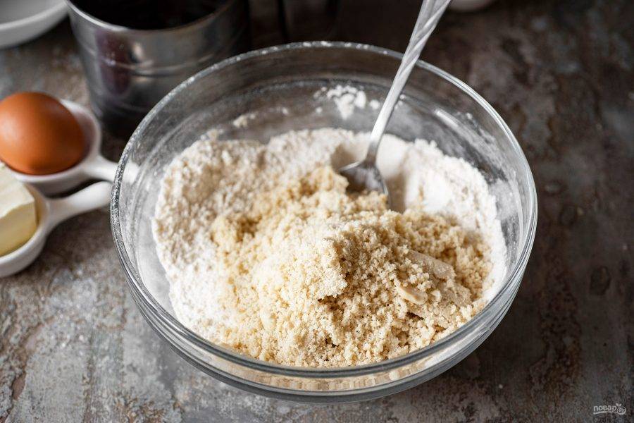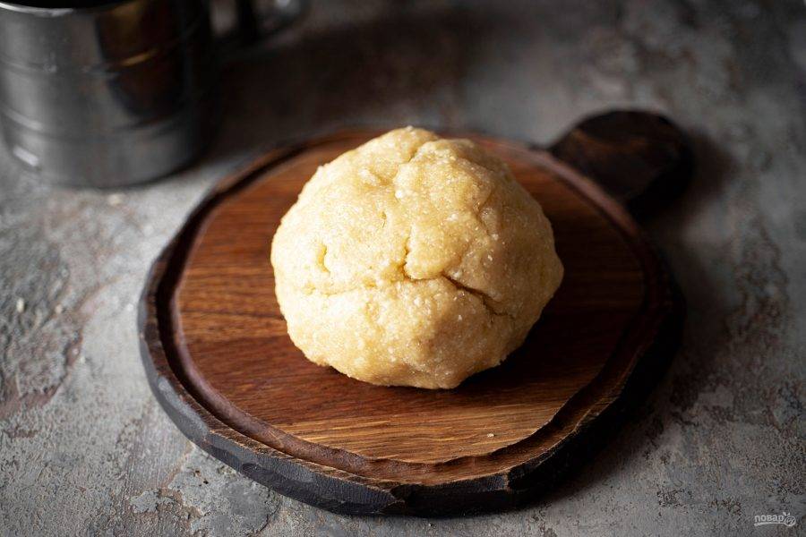 В итоге должно получиться плотное, немного хрупкое тесто, не прилипающее к рукам.