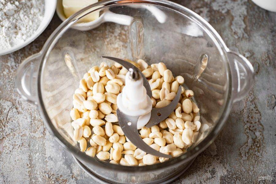 Добавьте измельченный в мелкую крошку арахис. Перемешайте.
