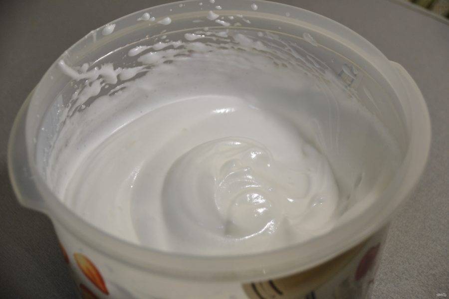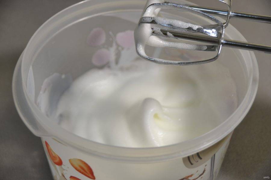 Положите 2 столовых ложки сметаны, снова взбейте.