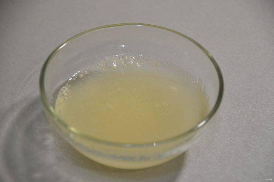 Нагрейте желатин, но не до кипения, это можно сделать в микроволновой печи за 20 секунд.