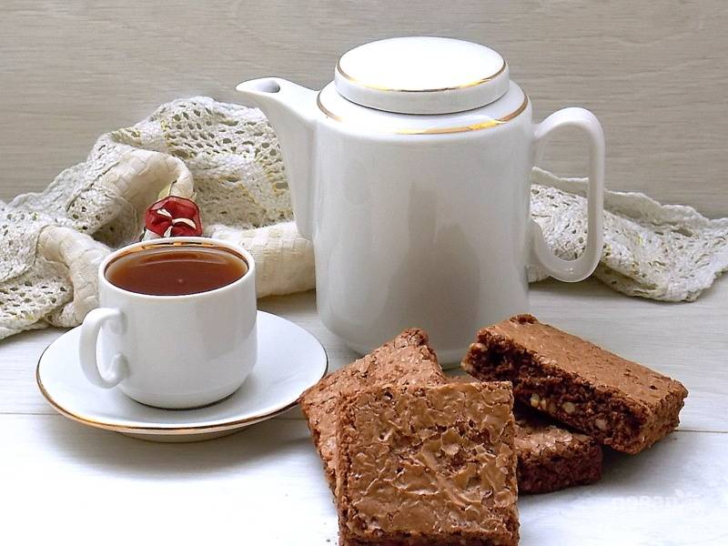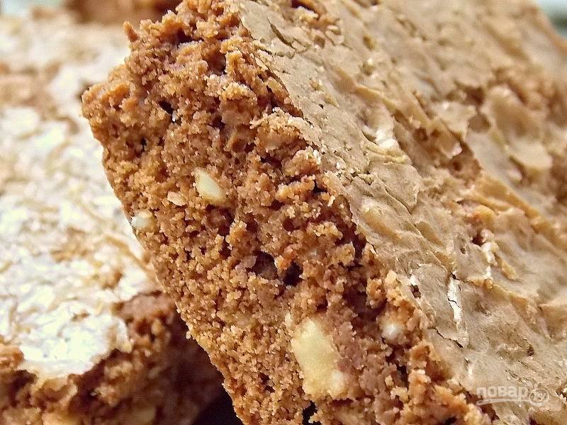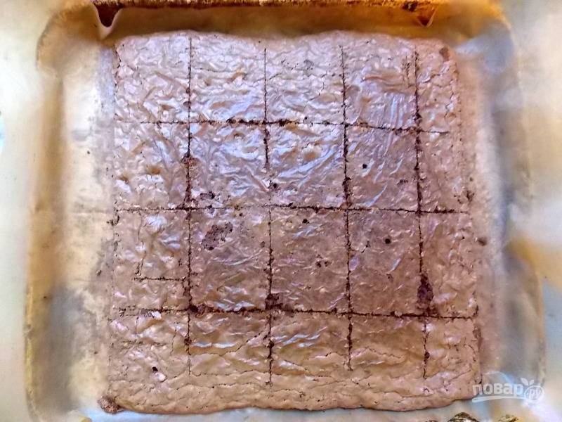 Выпекайте при 150 градусах в течении 35 минут. Выньте печенье из духовки, разрежьте на квадраты. Дайте остыть.