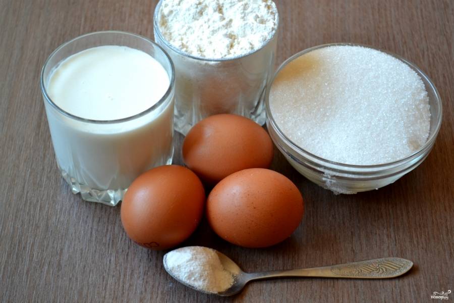 Подготовьте все необходимые ингредиенты, яйца достаньте из холодильника и подержите минут 15-20 при комнатной температуре, а муку просейте через сито с разрыхлителем для теста.