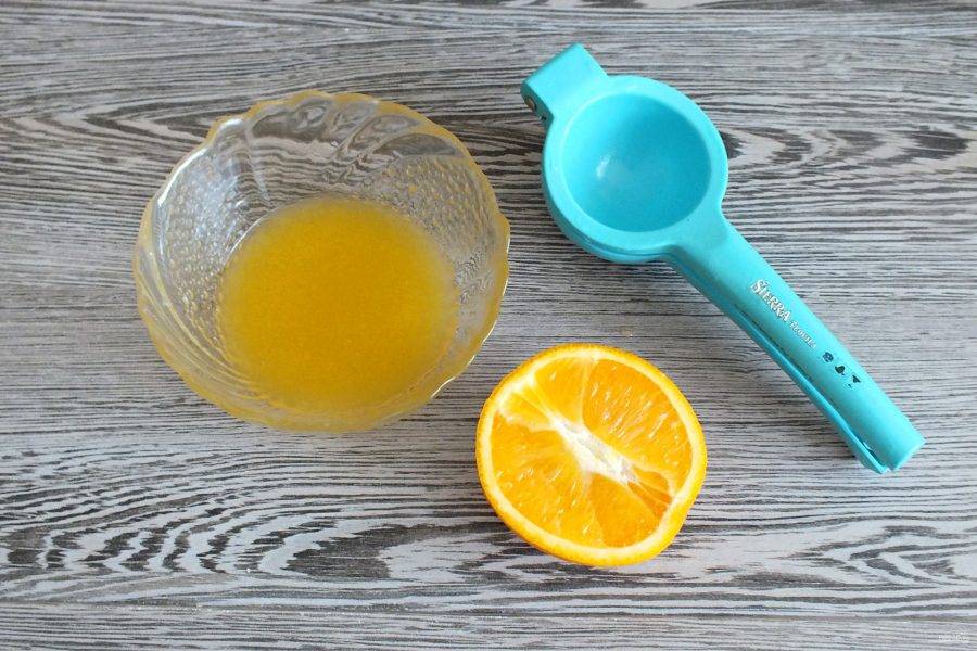Из апельсина выдавите сок. Его количество должно быть 50 мл.