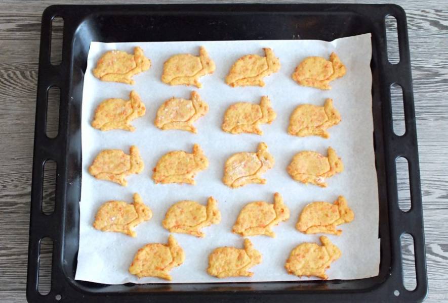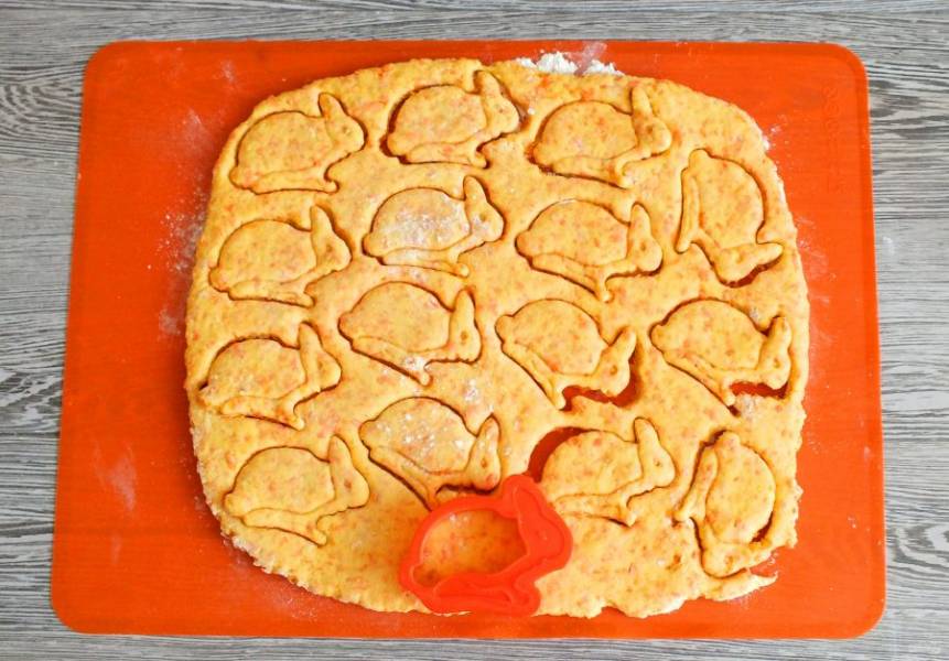 Раскатайте тесто в пласт толщиной 1 см. Нарежьте формочкой печенье.