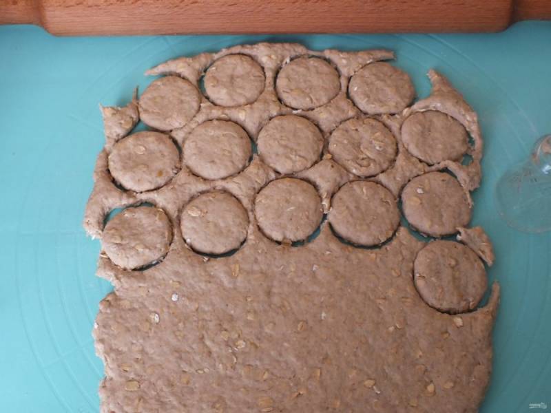 Включите духовку на 170 градусов. Тесто раскатайте в пласт толщиной 0,5 см. и вырежьте печенье любой формы.