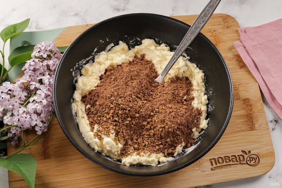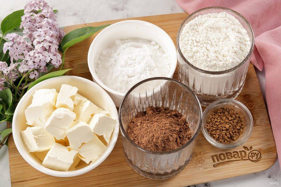 Подготовьте все ингредиенты по списку. Сливочное масло предварительно размягчите при комнатной температуре. Кофе лучше взять молотый, но подойдёт и растворимый.