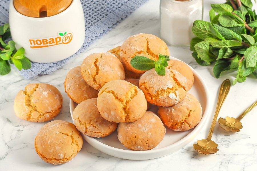 Выложите ароматное печенье на тарелку и подайте к столу с теплым молоком, чаем, лимонадом.