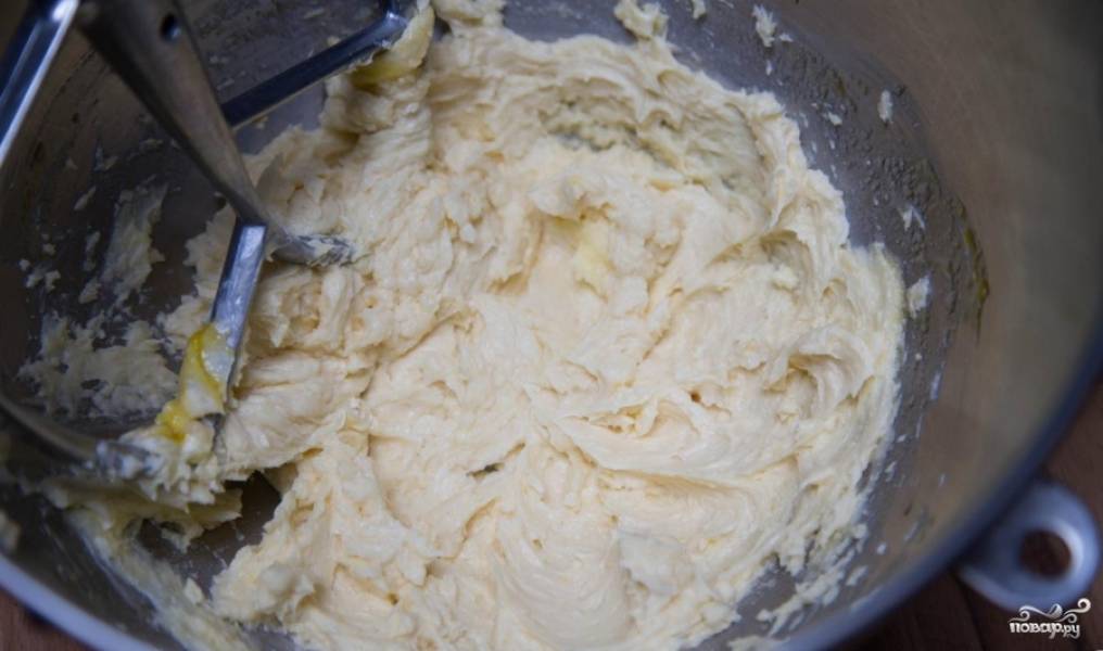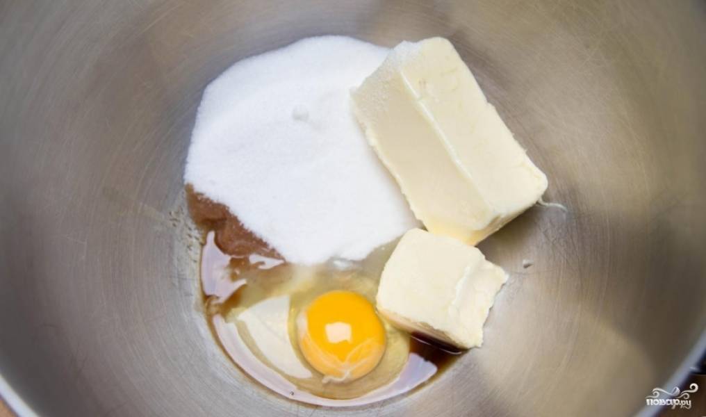 Смешайте в чашке сливочное масло, сахар, экстракт ванили (или ванилин), порошок для выпечки и яйцо.