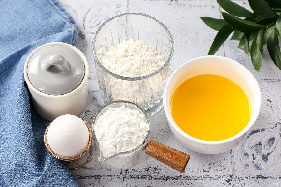 Подготовьте все ингредиенты. Сливочное масло растопите и дайте ему немного остыть.