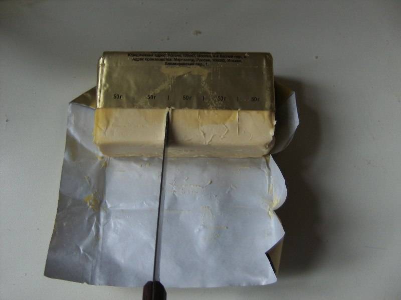 Для начала нам необходимо растереть хорошенько маргарин, пока он не приобретет беловатый оттенок. Можно сделать это при помощи блендера, как я, или же обычной вилкой.