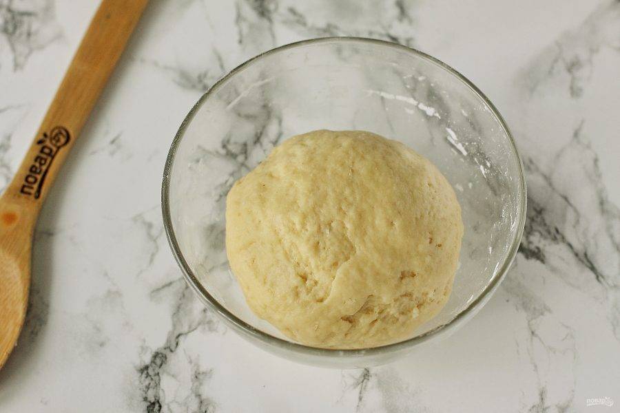 Замесите мягкое и пластичное тесто. Если необходимо, можно добавить в процессе еще немного муки, тесто не должно прилипать к рукам.