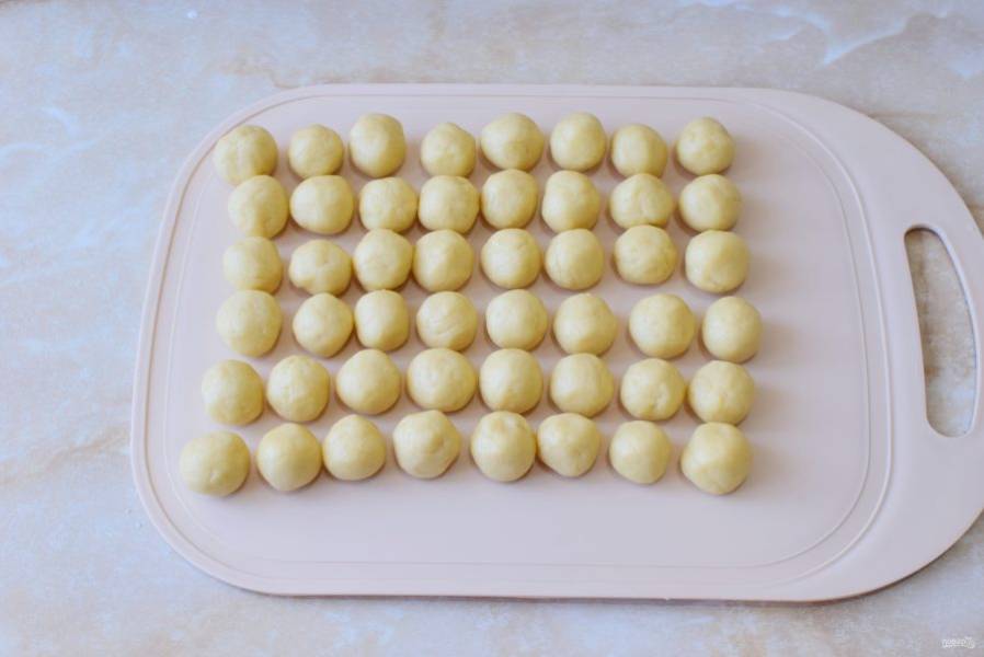 Из теста скатайте шарики, размером чуть меньше грецкого ореха.