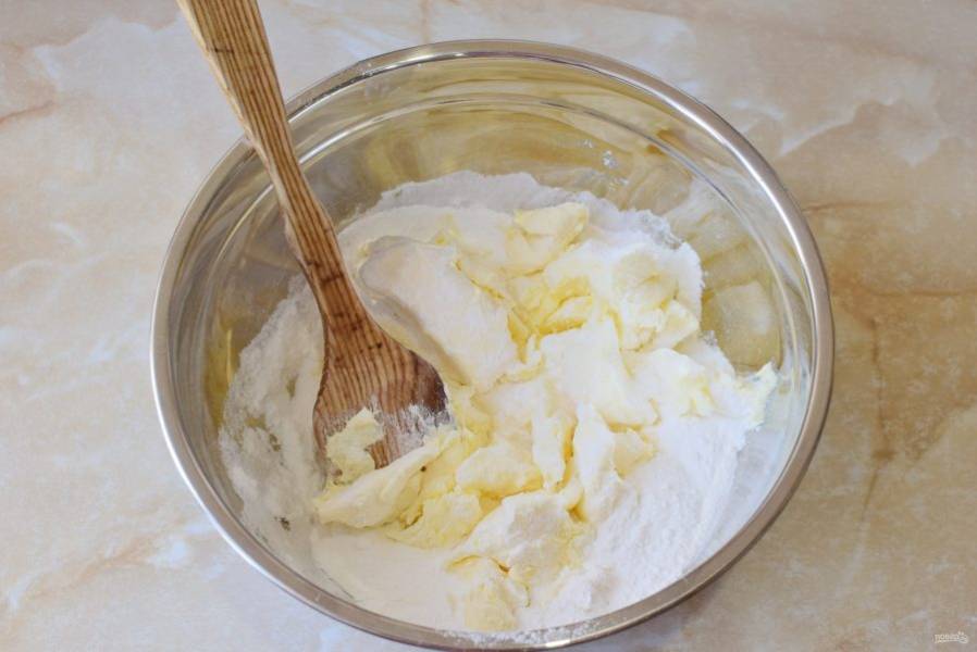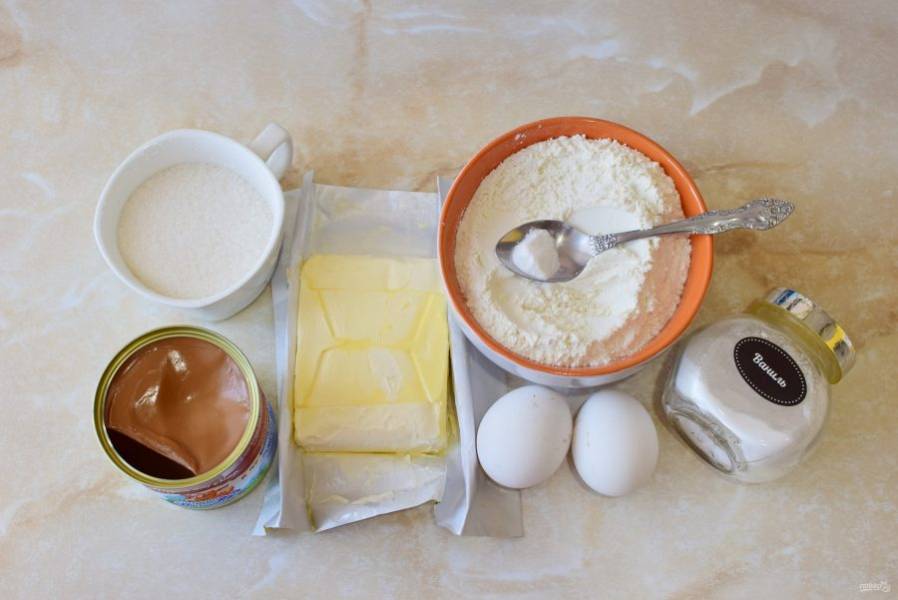 Для приготовления орешков подготовьте необходимые ингредиенты. Сливочное масло заранее достаньте из холодильника, чтобы оно стало мягкое. Муку просейте через сито. Сахар лучше измельчить в пудру, иначе он может не успеть раствориться в тесте.
