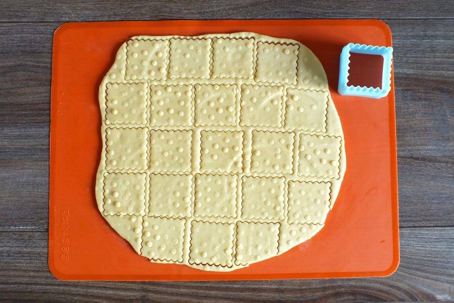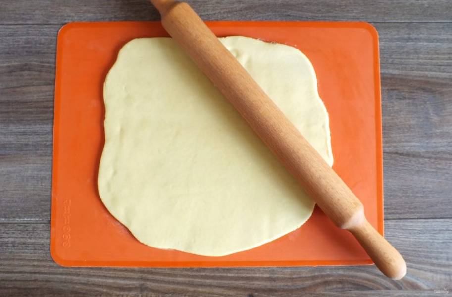 Рабочую поверхность слегка подпылите мукой. Раскатайте тесто в пласт толщиной 3-5 мм.