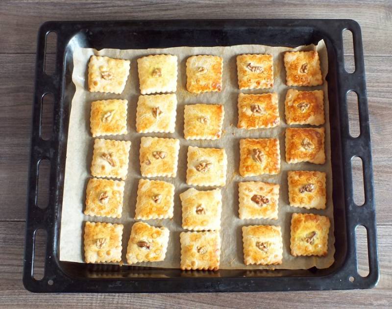 Через указанное время достаньте противень из духовки. Готовое печенье переложите на блюдо и охладите.