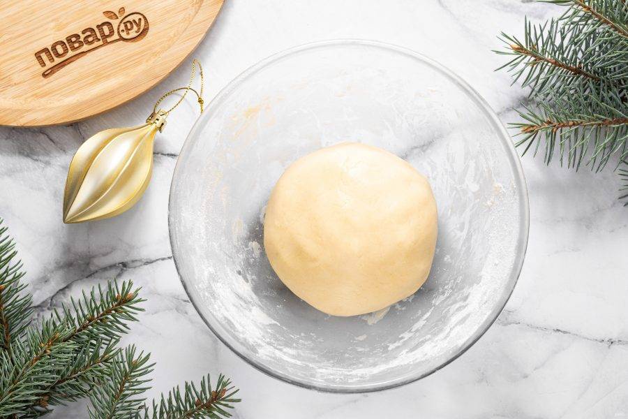 Сформируйте из теста шар, заверните в пленку и уберите в холодильник на полчаса.