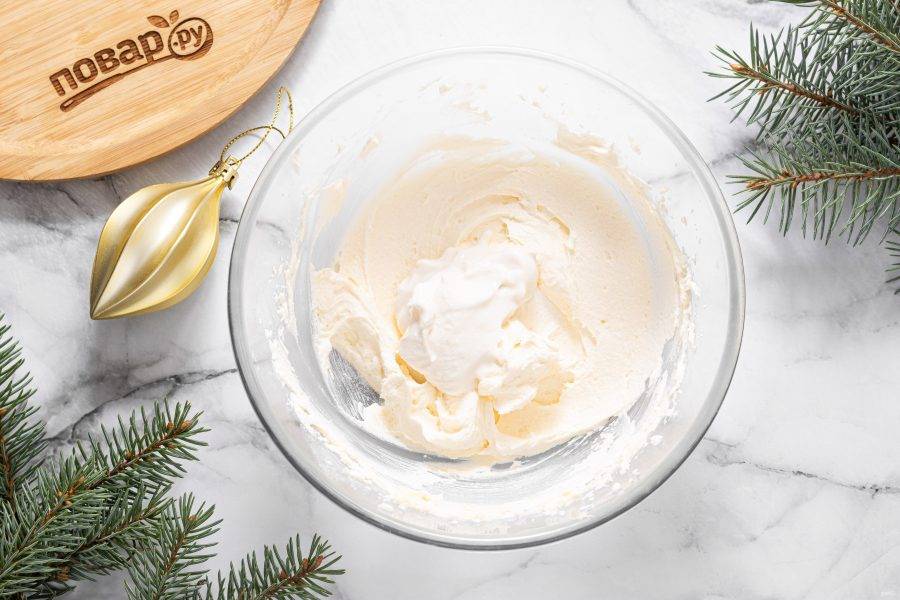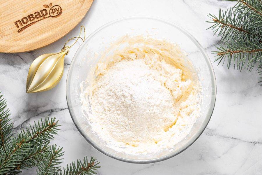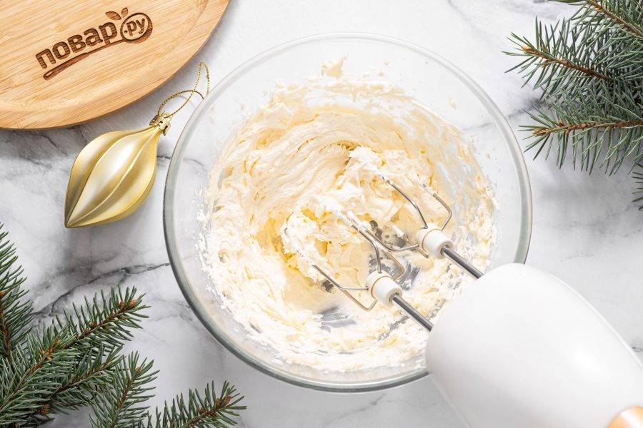 В глубокой миске взбейте миксером масло комнатной температуры вместе сахарной пудрой до пышной однородной массы.