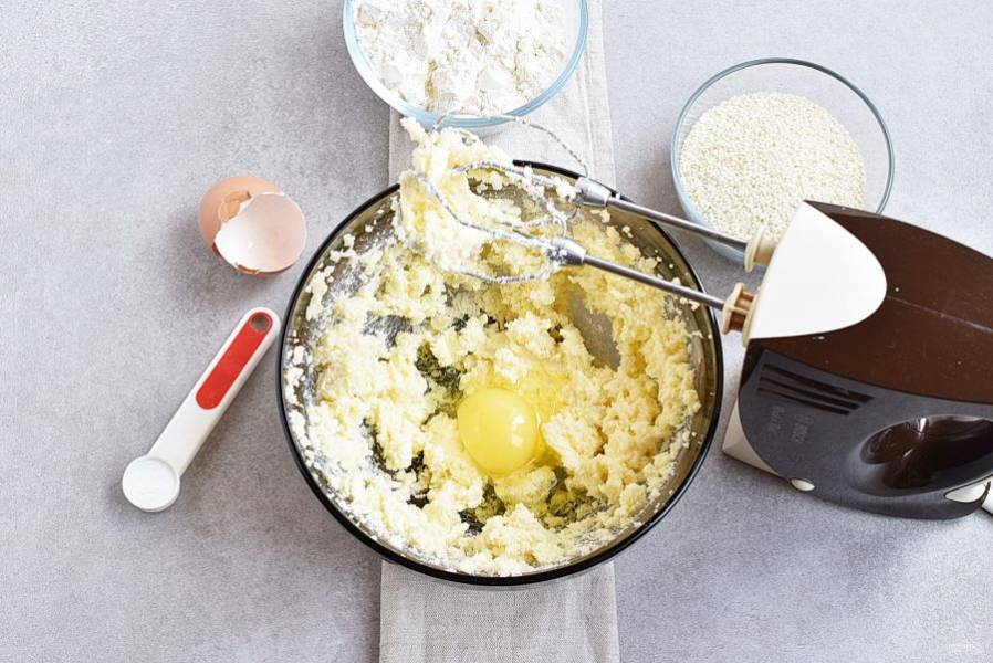 Добавьте яйцо и хорошо смешайте его с маслом.
