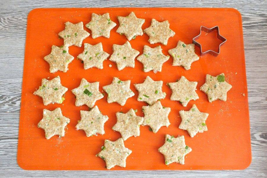 Вырубкой для печенья нарежьте заготовки.