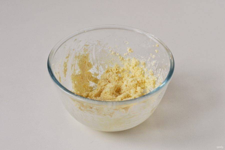 Миксером взбейте сливочное масло с сахаром до однородной массы.