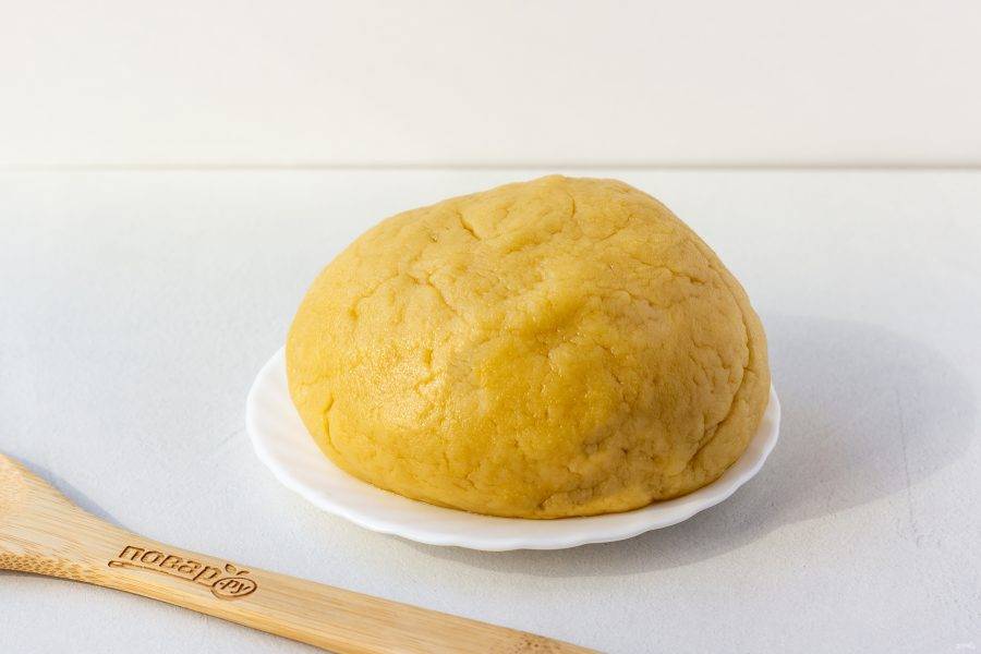 Муку просейте, введите в масляную массу и постепенно замесите мягкое, эластичное тесто. Оберните тесто в пакет и уберите в холодильник на 40-60 минут.