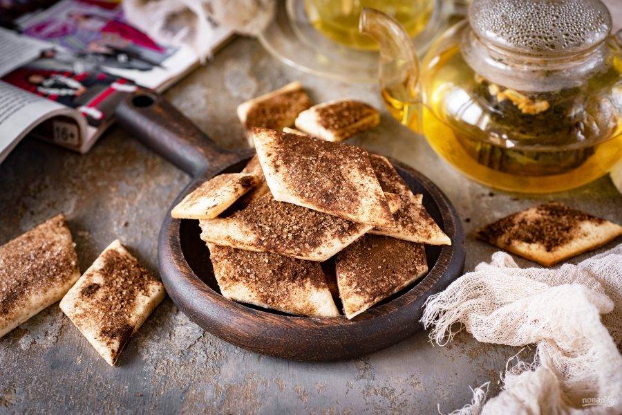 С хрусткой корочкой из смеси корицы и сахара, рассыпчатое, очень ароматное — это печенье получается невероятно вкусным, с чашкой чая съедается просто мгновенно. Готовится просто и быстро!