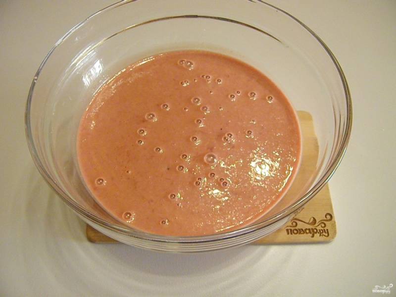 Блинное тесто готово. Оно не такое жидкое, как на обычные блины, чуть гуще.