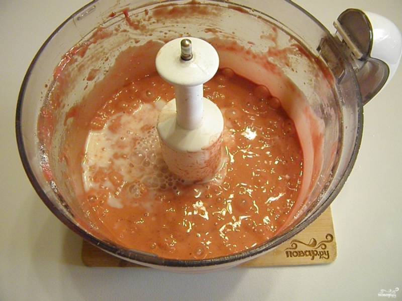 Вымытую печень порежьте кусочками и сложите в мощный блендер. Не должно быть там протоков, их обязательно вырежьте. Измельчайте печень до однородного состояния. Комков быть не должно. С куриной печенью проблем не будет, а вот свиную измельчайте подольше.