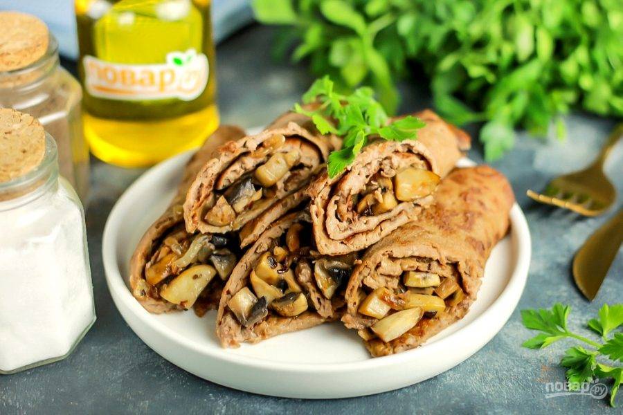 Печеночные блины с грибной начинкой