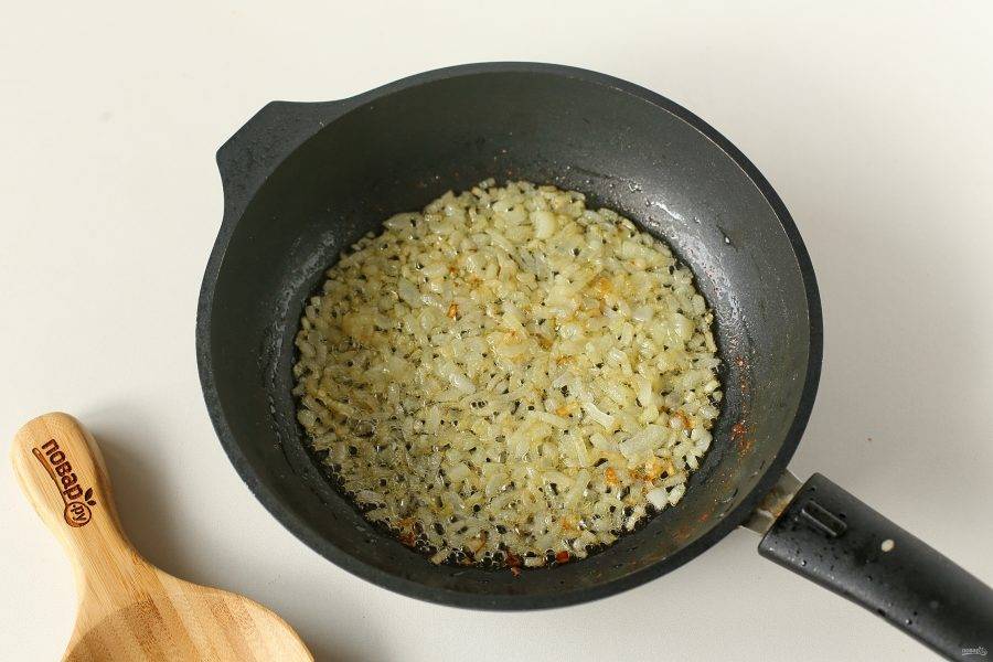 Лук нарежьте мелкими кубиками и обжарьте на сливочном масле.