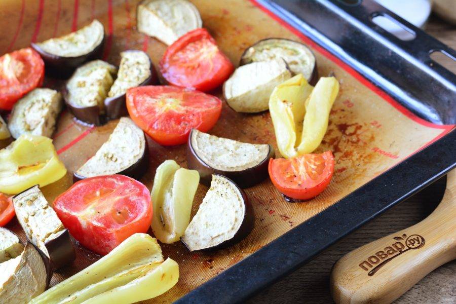 Запекайте овощи в духовке 35-40 минут при температуре 180 градусов.