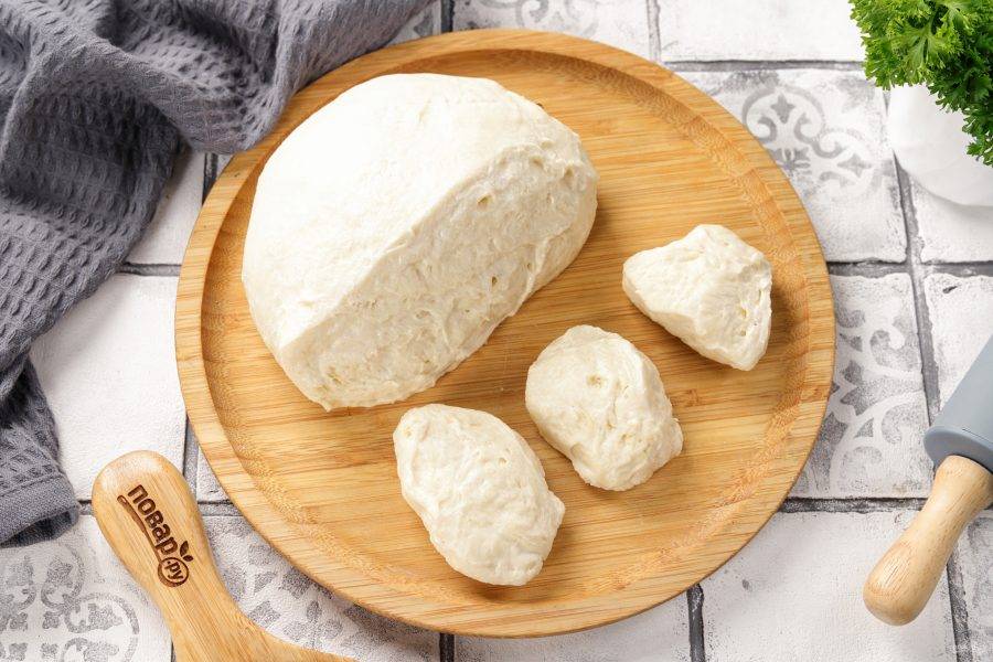 Разделите тесто на равные кусочки, размер зависит от желаемого размера пирожков. Я разделила на 20 частей, весом 40-50 грамм.