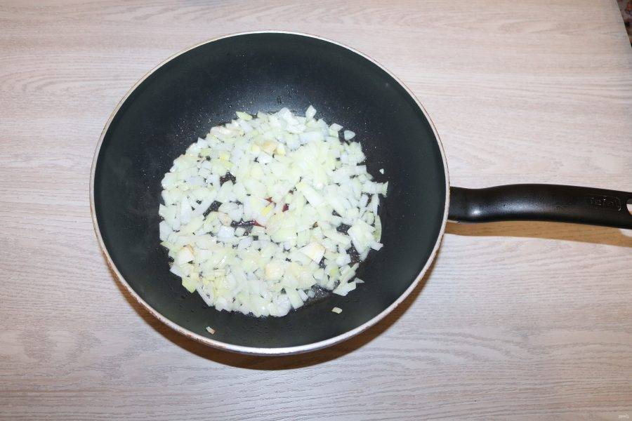 Обжарьте лук в небольшом количестве масла до прозрачного цвета.