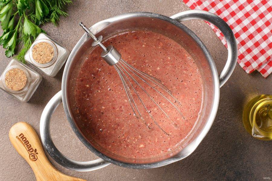 Печень промойте и переложите в чашу блендера. Измельчите до однородного состояния.