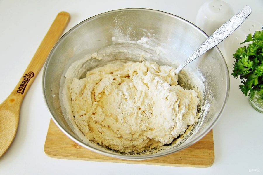 Частями добавьте муку.