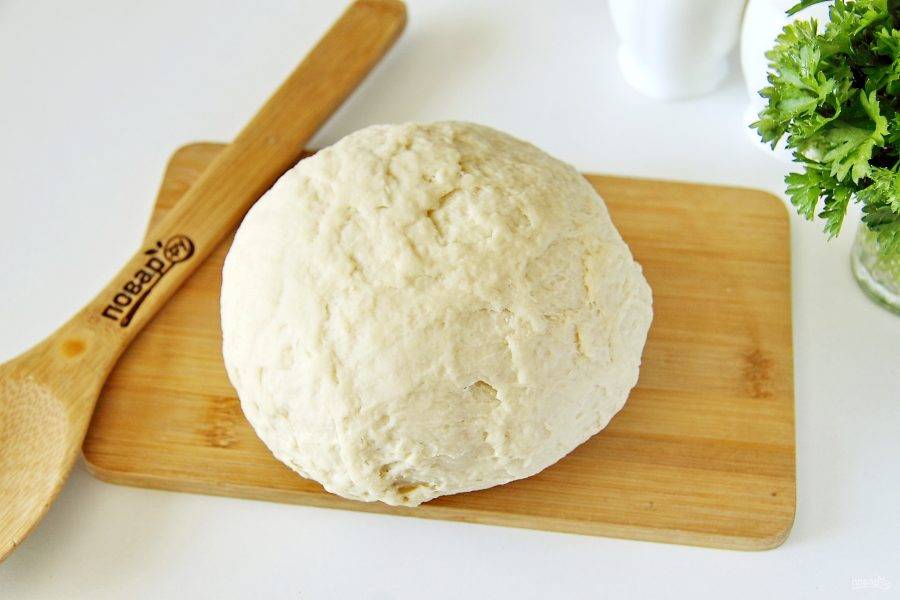 Затем начинайте замес руками, подсыпая периодически оставшуюся муку. Муки может уйти чуть больше или меньше. Готовое тесто не должно липнуть к рукам, оно должно быть эластичным и податливым. Накройте тесто чистым полотенцем или глубокой тарелкой и оставьте "отдыхать" на 30 минут.